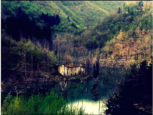 Così il torrente è rimasto intrappolato come una lucciola tra due palmi di mano e s’è ingrossato ed è diventato un lago, e gli alberi che c’erano sono morti annegati. Ne restano gli scheletri lunghi e lisci come ossa, incrostati di funghi e abitati dai gufi.